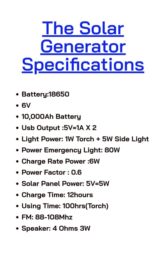 The Multi-Functional Solar Power Generator Is An Answer To The Problems Of No Electricity And Increase In Petrol Price We Are Faced With Currently, It Is Specially Introduced For Areas Without Constant Electricity To Help Keep Your Gadgets Charged And Active.
